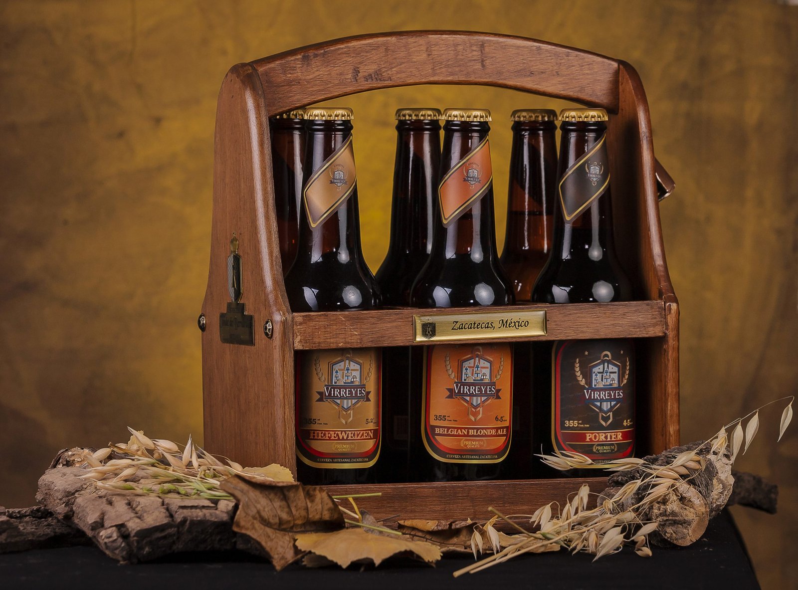 Caja artesanal de madera de 6 piezas que con destapador y logotipos metálicos. Incluye 6 de nuestras cervezas y se puede personalizar con el nombre considerando un tiempo adicional de entrega de 3 semanas.